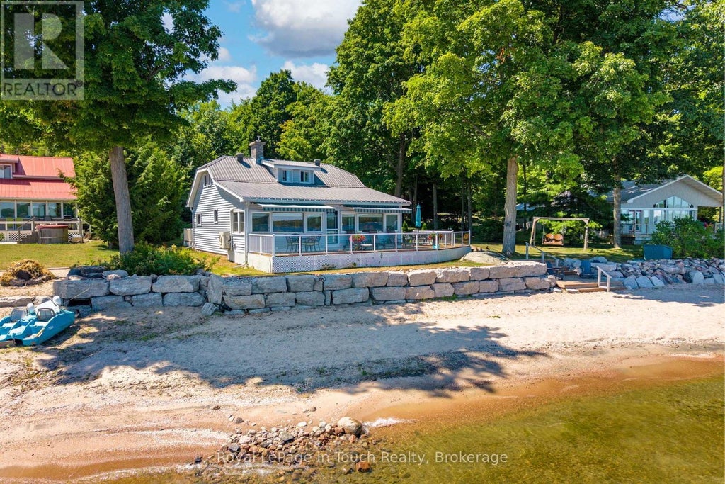 What an opportunity of a lifetime to own this gorgeous well maintained, 1579 s.f. 3 bedroom waterfront year round home located at Clearwater Beach on the shores of Georgian Bay. This property offers 96 feet of frontage with eastern exposure on a mature lot with sand beach, child friendly shoreline, an interlock walkway, back up generator, & 2 awnings over the waterside deck. The interior offers cherrywood flooring, pine tongue and groove walls and ceilings in the family room, quartz counters in the kitchen & Included is also a self contained seasonal bunkie allowing for extra guests and company, featuring a kitchen, 2 bedrooms, a family room, 3 pc washroom, a loft & pine accents throughout. There is also a detached garage with a storage area. View this property, and you will fall in love with the location, the views and the value added features. This one is a Georgian Bay jewel! (id:6289)