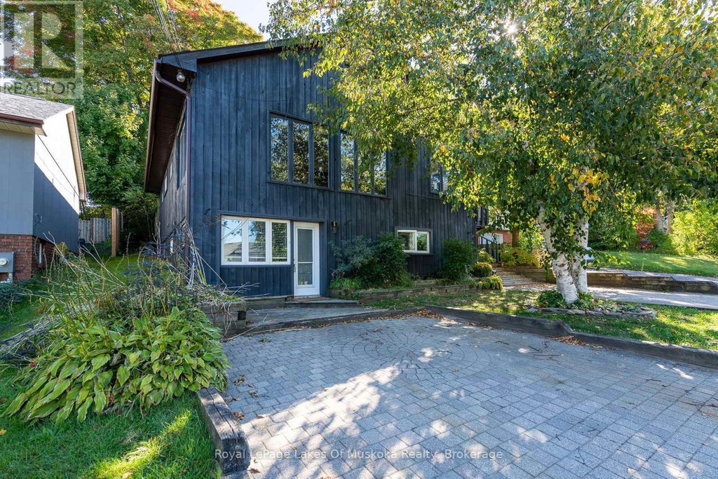 This spacious warm and inviting family home has a bonus 2 + den lower level walk out legal non-conforming apartment. Nestled in the heart of downtown Huntsville with a walking score of 10 to all amenities including the mall in this prime sought after area. The 4 bedroom main residence has been a beloved gathering place for family and friends for decades with a bright open concept kitchen/dining and living room surrounded by a window wall and a beautiful custom gas fireplace anchors the room. Kitchen features built in appliances and massive island for the gourmet cook to enjoy creating while still in the middle of the conversation and energy with 6 bar stools for everyone to gather. The main level also offers 3 bedrooms, one with a walkout and a main bathroom and laundry with another walk out to your private rear yard not feeling like you are in the center of town. The 2nd level boasts a large master suite including your 3 piece ensuite and separate office with a private deck. The lower level 2 + den legal non-conforming apartment has open concept living/dining/kitchen with a gas fireplace, 4pc bathroom and laundry. The current owner has had family renting the lower level for many years and now it is vacant and ready for a buyer to use it or rent it out. The apartment and the main residence both have their own separate driveways and parking areas which are interlock brick and in great shape. The main residence enjoys a large wrap around deck plus a patio and a gazebo in the very private backyard. There are no homes behind so it does feel peaceful and removed from the bustle of downtown. This home has been enjoyed by the same family for over 30 years and offers many opportunites for a new family or as an investment. A pleasure to view! (id:6289)