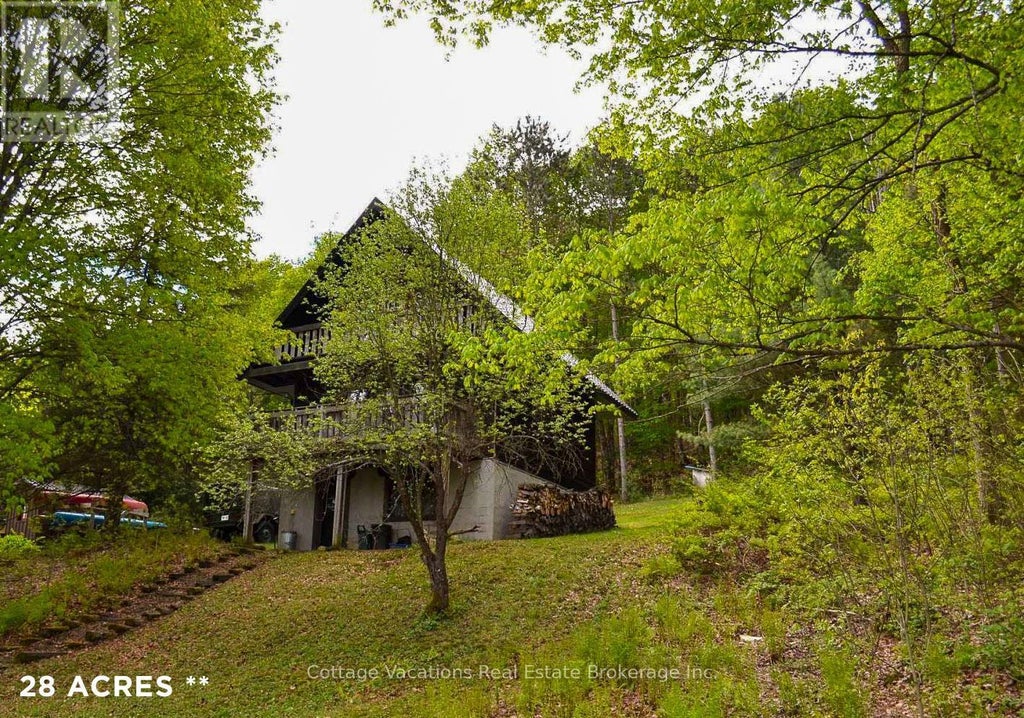 28 ACRES just outside of town with a 3 bedroom chalet, plenty of room to roam and views out across Lake Vernon. Tucked up away from the road this home gives plenty of privacy too. Fantastic proximity to town and really easy access to Hwy 11 for travel. The topography here on this 28 acres enjoys a fairly steep, hilly terrain, which is great for hiking and the deer love it here. An outdoor lovers dream property while still being close to all amenities. The chalet is super cute and quaint with an open concept main floor living space, office/den and 2pc bathroom off the entranceway. New metal roof, updated forced air natural gas furnace, new on-demand hot water, natural gas kitchen stove and solid building provide move in ready easiness. The bedrooms are located on the upper level with the 3pc bathroom. The partially finished lower level houses the mechanicals and features an oversized walkout basement door with easy access for storing all the toys and tools. The lower level has always been dry and fully usable. There is also an additional large shed beside the driveway for a small workshop or more storage. Come and check out this unique opportunity to have a rural setting so close to urban living. (id:6289)