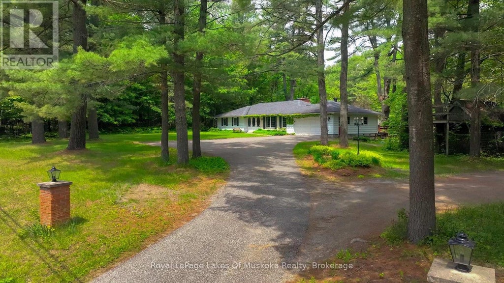 Escape to the Heart of Muskoka. First Time Offered! Discover this rare opportunity to own a stunning country home set on approximately 20 acres of pristine Muskoka forest. Surrounded by nature complete with a network of well-maintained private trails, this peaceful property is a dream for outdoor enthusiasts, nature lovers & those seeking tranquil year-round living. Designed to complement its natural setting, this spacious and well-appointed home offers the perfect blend of comfort, charm and functionality. Spend your summer days lounging by the in-ground pool, relaxing in the screened gazebo or unwinding on the expansive rear deck overlooking the pool area and forest beyond. The welcoming screened front porch is ideal for enjoying quiet mornings or peaceful evenings immersed in Muskoka's beauty. Inside the home, the main floor features a warm, inviting layout with hardwood & tile flooring throughout the principal rooms. The living room showcases a classic wood-burning fireplace, while the cozy family room complete with a brick fireplace with electric insert, opens directly onto the back deck, making it perfect for entertaining or quiet relaxation. The kitchen also offers a peaceful view & is equipped with ample cupboard space & generous counter area, making meal prep a pleasure. The primary bedroom is a serene private retreat with its own electric fireplace & 3-piece ensuite. Two additional main floor bedrooms , full 4-piece bath & main floor laundry room provide comfortable accommodations for family or guests. Downstairs, the full basement adds extensive living space with a large recreation room, craft room, two additional bedrooms, office & workshop area which are ideal for hobbies, remote work or expanding family needs. Less than 10 minutes from downtown Huntsville, offering easy access to shopping, dining, and town amenities. This exceptional Muskoka property has it all. Don't miss your chance to own a slice of true Muskoka. Book your private showing today! (id:6289)