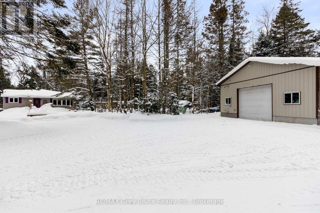 PARADISE FOUND! Welcome to your private retreat nestled on a serene 2-acre lot at the end of a quiet dead-end road. Surrounded by mature trees this property is the perfect escape from city life and even offers potential for a home-based business. One of the standout features is the impressive 30' x 40' heated and insulated garage/workshop a dream space for hobbyists, mechanics, or entrepreneurs. It includes its own laundry, an outdoor shower, floor drain, drive-through doors, and a large 10' high by 12' wide automatic bay door. Additional storage is no issue with a 9' x 40' lean-to and a detached shed. You'll love the greenhouse with its own propane furnace and water hookup. Coupled with the raised garden beds, garden area, and fruit trees, you could have home-grown food galore! Inside, the home offers over 1,600+ sq. ft. of comfortable living space, plus a 294 sq.ft. 3-season sunroom featuring a fireplace and TV, perfect for bug-free relaxation or entertaining. The spacious kitchen is equipped with solid cherry cabinets, a large island, and an integrated office nook. Just off the kitchen is a bright, open-concept living and dining area, centered around one of the homes three propane fireplaces. The primary bedroom offers direct access to the sunroom, a walk-in closet, its own fireplace, and a luxurious jacuzzi tub. Quality finishes run throughout the home, including solid oak doors and trim, hardwood flooring, central air, propane furnace, and central vac. A partial-height basement adds additional storage and features a woodstove to keep things cozy. Located just a short drive from Lion's Head for all your amenities, and minutes from Black Creek Provincial Park and its sandy beach for family enjoyment on warm summer days or watching beautiful sunsets. If you're dreaming of a move to the country with flexible, functional outbuildings and peaceful surroundings this property could be the perfect fit! (id:6289)